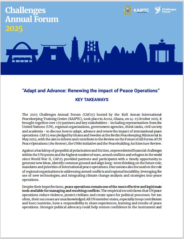 At the 2025 UN Peacekeeping Ministerial in Berlin, Sweden and Ghana proudly pledged the Challenges Annual Forum 2025 (CAF25) in support of the UN Secretary-General’s ongoing Review of all Forms of UN Peace Operations (the Review).
